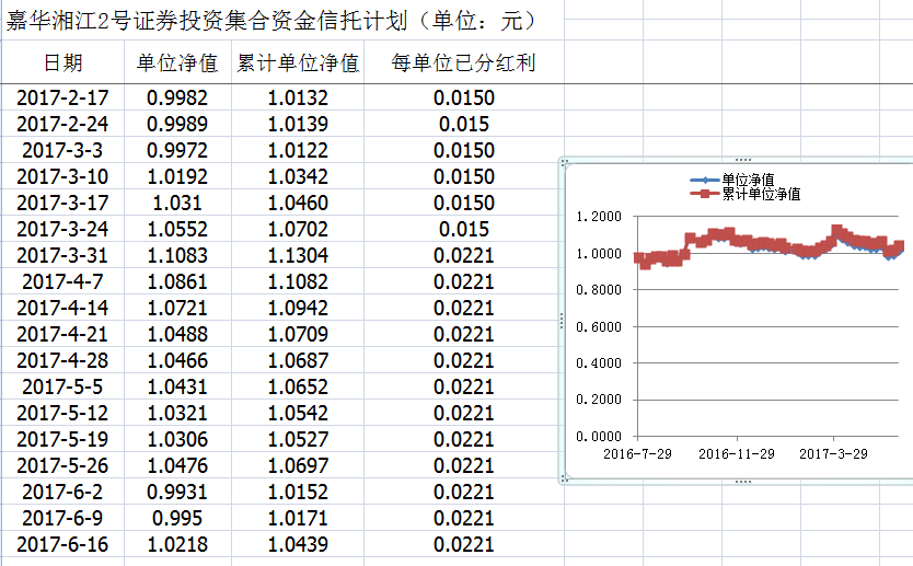 嘉华湘江2号证券投资集合资金信托计划净值披露(2017年6月16日)