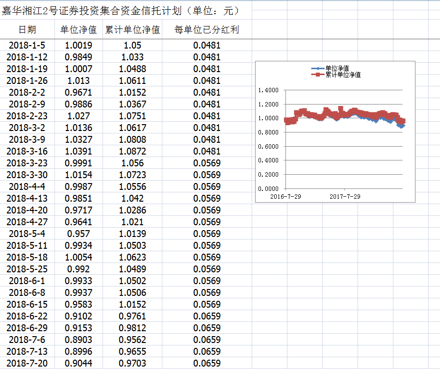 嘉华湘江2号证券投资集合资金信托计划净值披露(2018年7月20日)