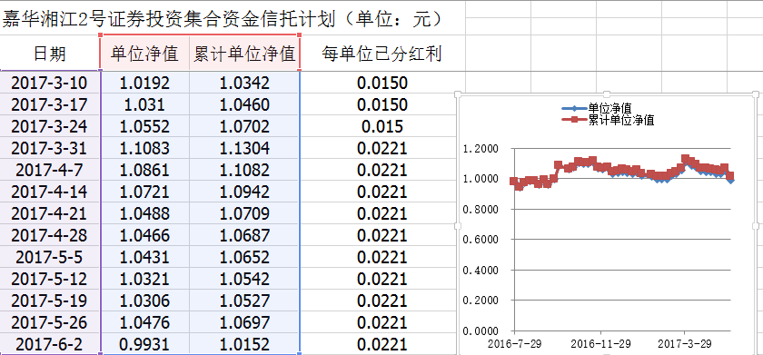 嘉华湘江2号证券投资集合资金信托计划净值披露(2017年6月2日)