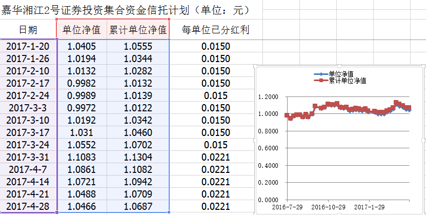 嘉华湘江2号证券投资集合资金信托计划净值披露(2017年4月28日)