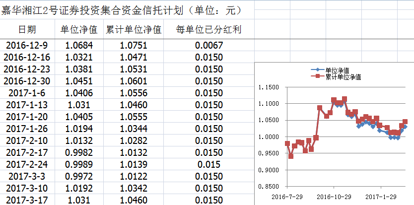 嘉华湘江2号证券投资集合资金信托计划净值披露(2017年3月17日)