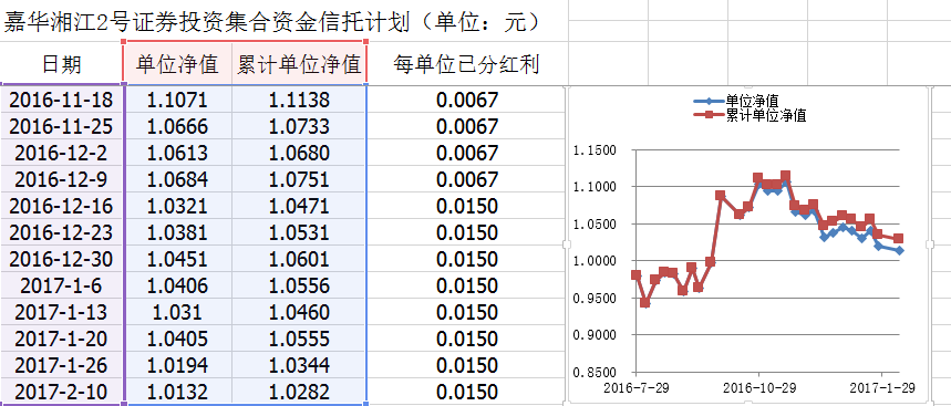 嘉华湘江2号证券投资集合资金信托计划净值披露(2017年2月10日)