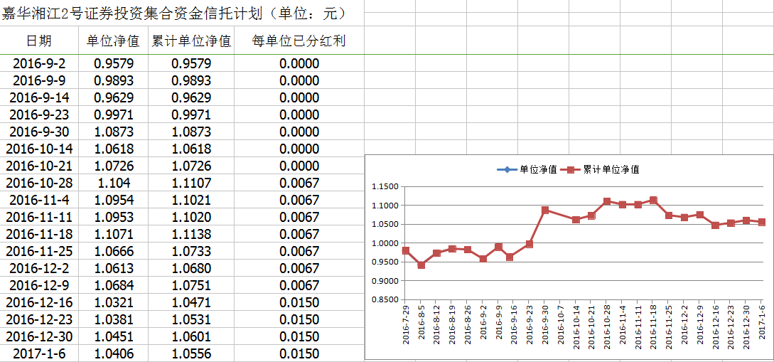 嘉华湘江2号证券投资集合资金信托计划净值披露(2017年1月6日)