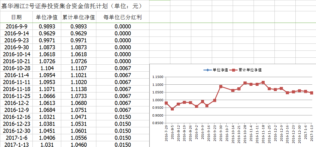 嘉华湘江2号证券投资集合资金信托计划净值披露(2017年1月13日)