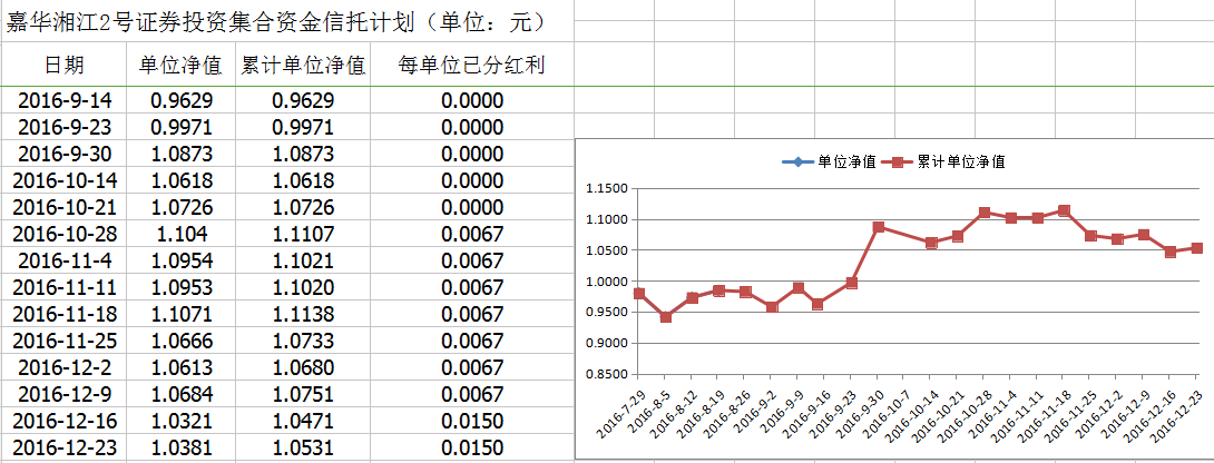 嘉华湘江2号证券投资集合资金信托计划净值披露(2016年12月23日)