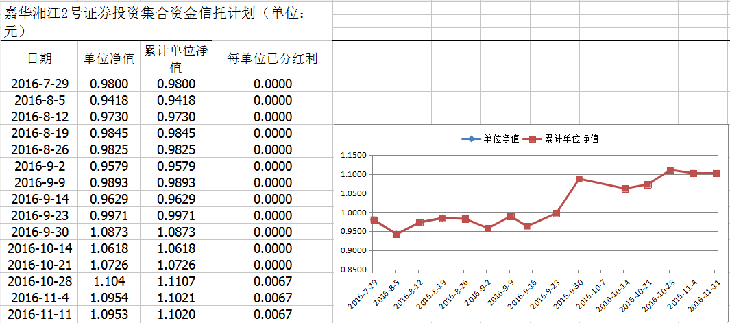 嘉华湘江2号证券投资集合资金信托计划净值披露(2016年11月11日)