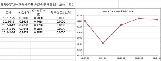 嘉华湘江2号证券投资集合资金信托计划净值披露(2016年8月26日)