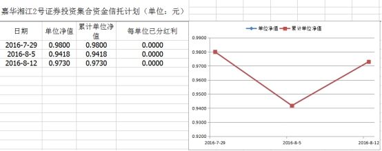 嘉华湘江2号证券投资集合资金信托计划净值披露 (2016年8月12日