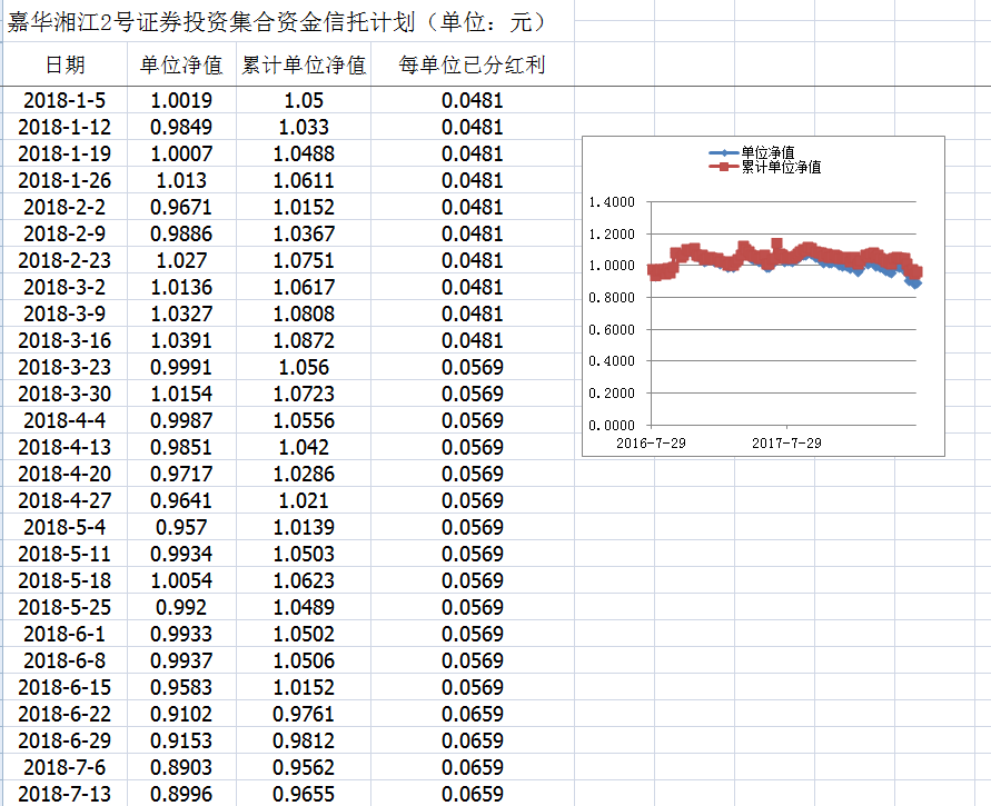 嘉华湘江2号证券投资集合资金信托计划净值披露(2018年7月13日)