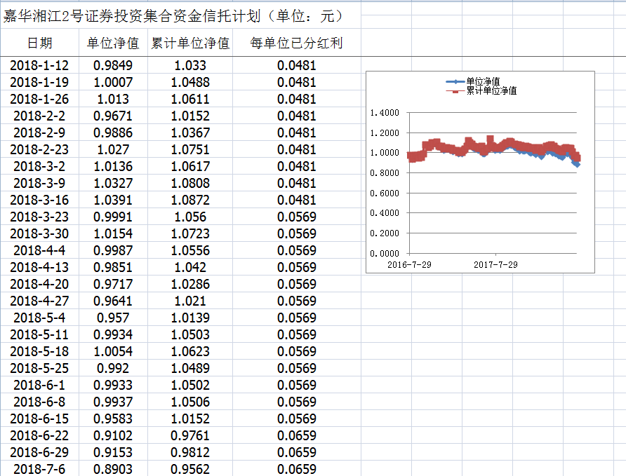 嘉华湘江2号证券投资集合资金信托计划净值披露(2018年7月6日)