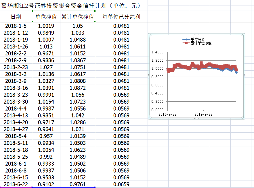 嘉华湘江2号证券投资集合资金信托计划净值披露(2018年6月22日)