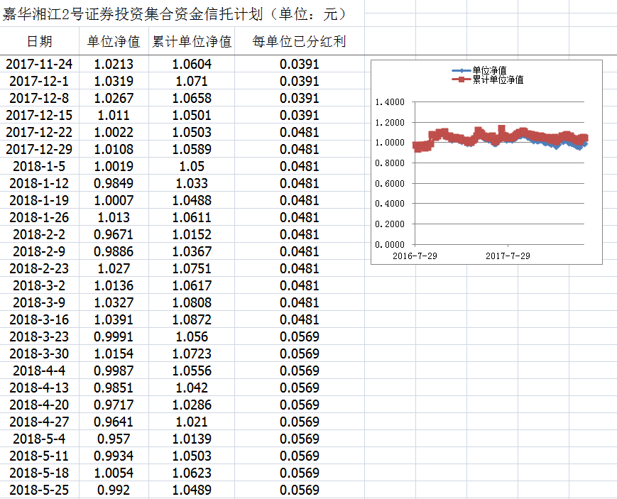 嘉华湘江2号证券投资集合资金信托计划净值披露(2018年5月25日)