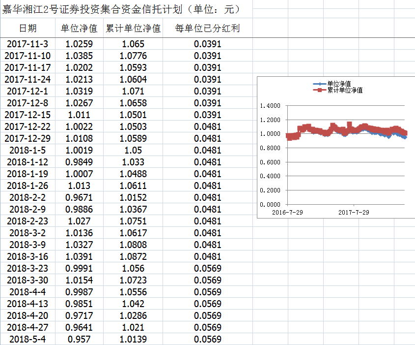 嘉华湘江2号证券投资集合资金信托计划净值披露(2018年5月4日)