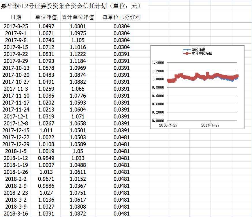 嘉华湘江2号证券投资集合资金信托计划净值披露(2018年3月16日)