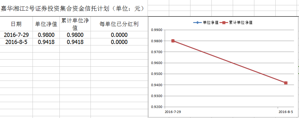 嘉华湘江2号证券投资集合资金信托计划净值披露 (2016年8月5日)