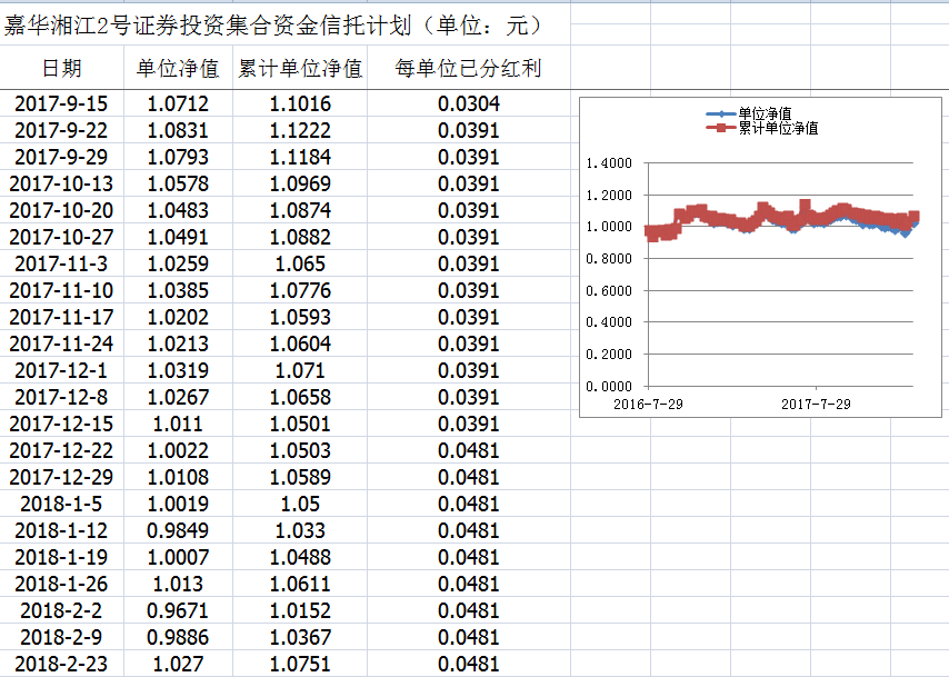 嘉华湘江2号证券投资集合资金信托计划净值披露(2018年2月23日)