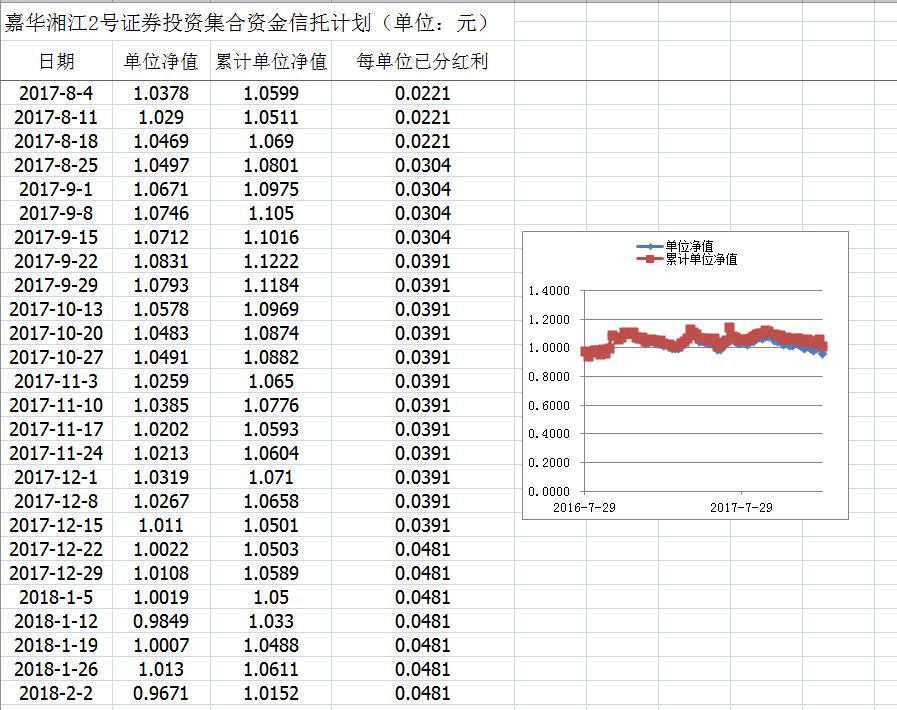 嘉华湘江2号证券投资集合资金信托计划净值披露(2018年2月2日)