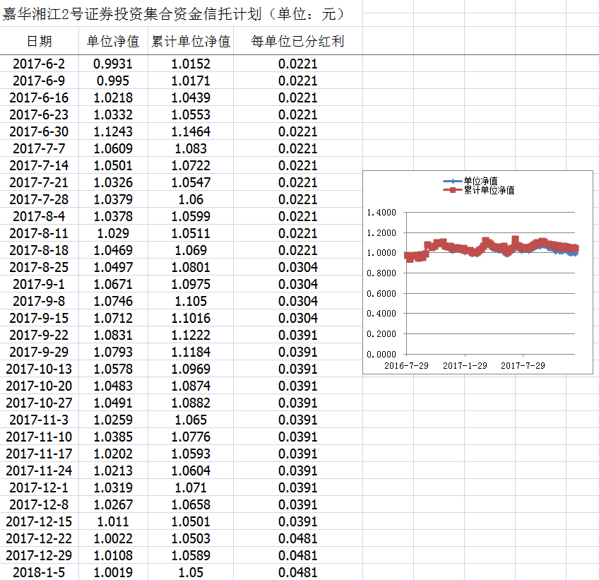 嘉华湘江2号证券投资集合资金信托计划净值披露(2018年1月5日)