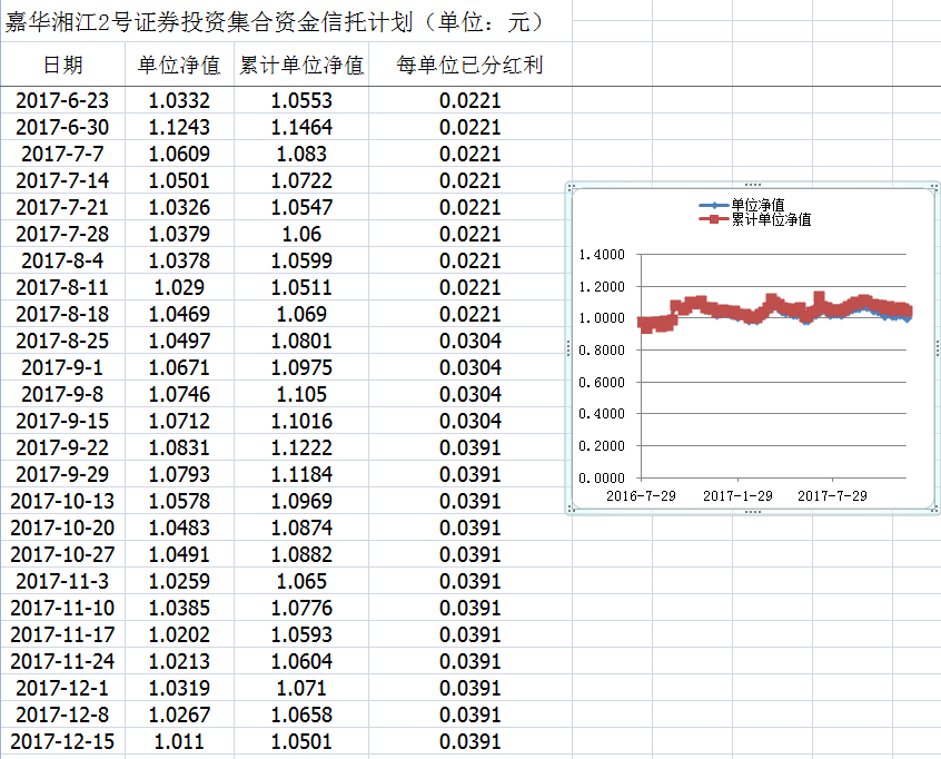 嘉华湘江2号证券投资集合资金信托计划净值披露(2017年12月15日)