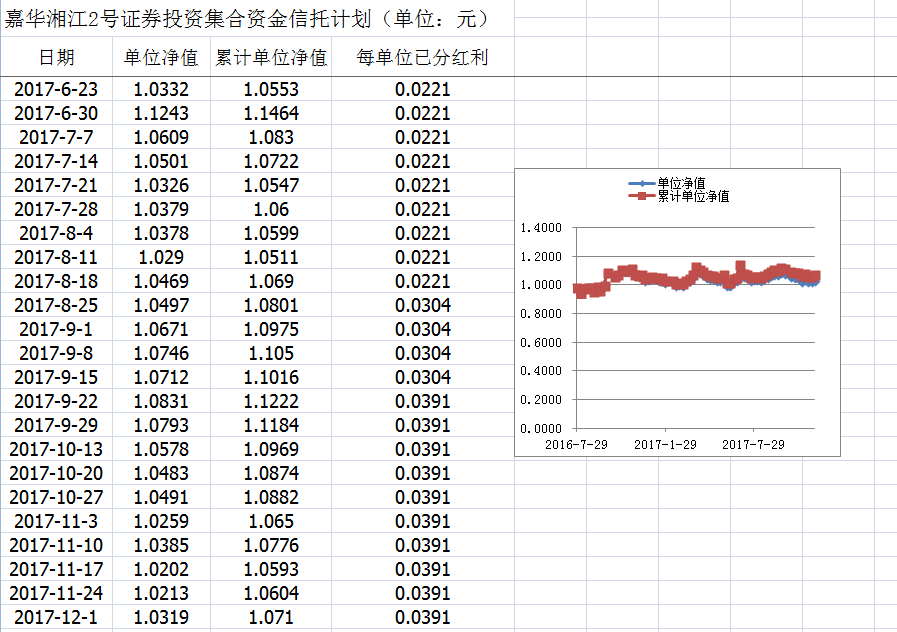 嘉华湘江2号证券投资集合资金信托计划净值披露(2017年12月1日)