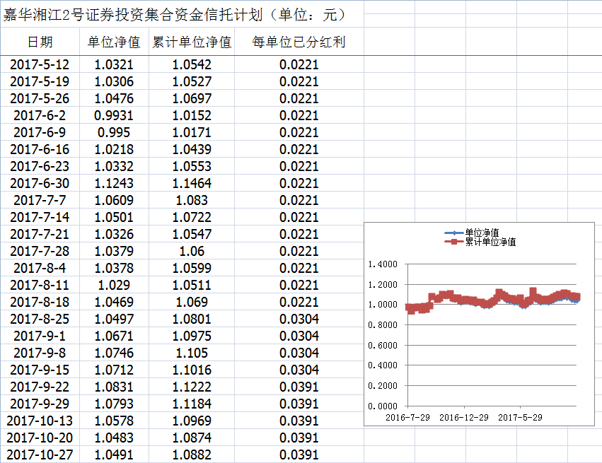 嘉华湘江2号证券投资集合资金信托计划净值披露(2017年10月27日)