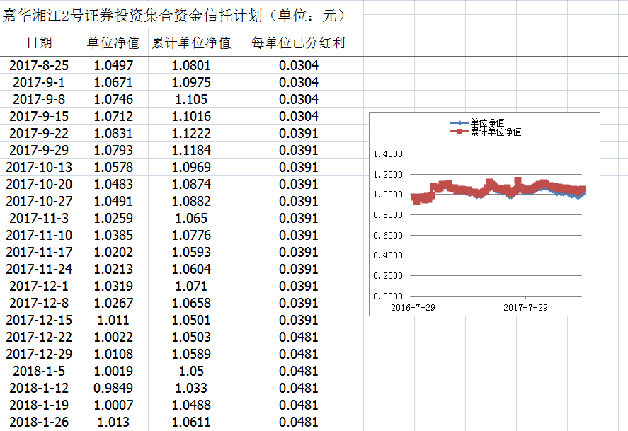 嘉华湘江2号证券投资集合资金信托计划净值披露(2018年1月26日)