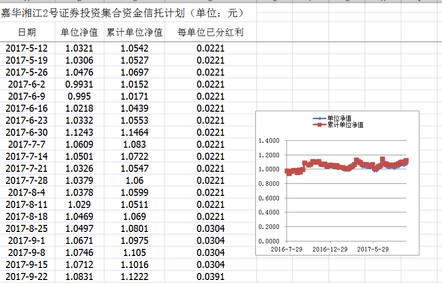 嘉华湘江2号证券投资集合资金信托计划净值披露(2017年9月22日)