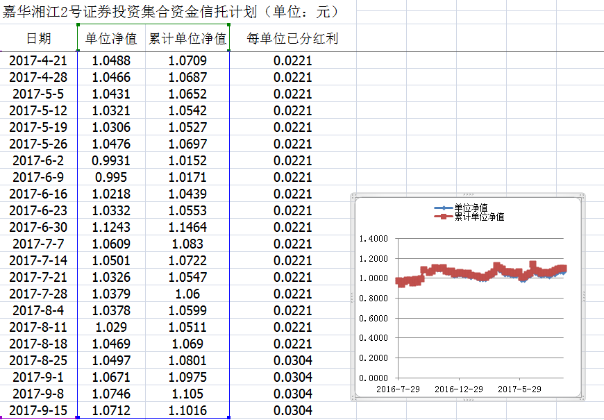 嘉华湘江2号证券投资集合资金信托计划净值披露(2017年9月15日)