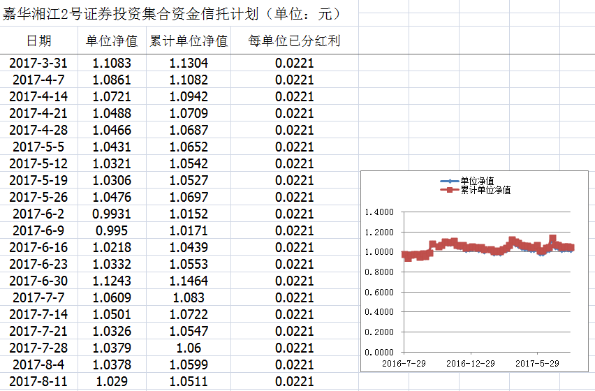 嘉华湘江2号证券投资集合资金信托计划净值披露(2017年8月11日)