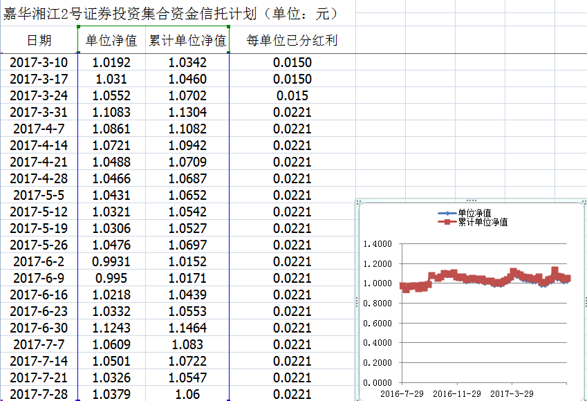 嘉华湘江2号证券投资集合资金信托计划净值披露(2017年7月28日)