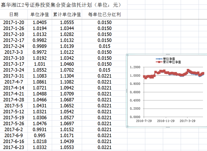 嘉华湘江2号证券投资集合资金信托计划净值披露(2017年6月23日)