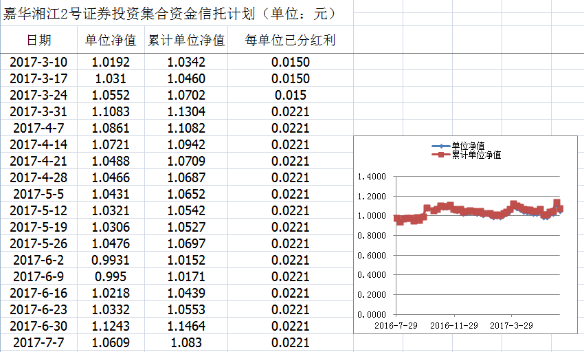 嘉华湘江2号证券投资集合资金信托计划净值披露(2017年7月7日)