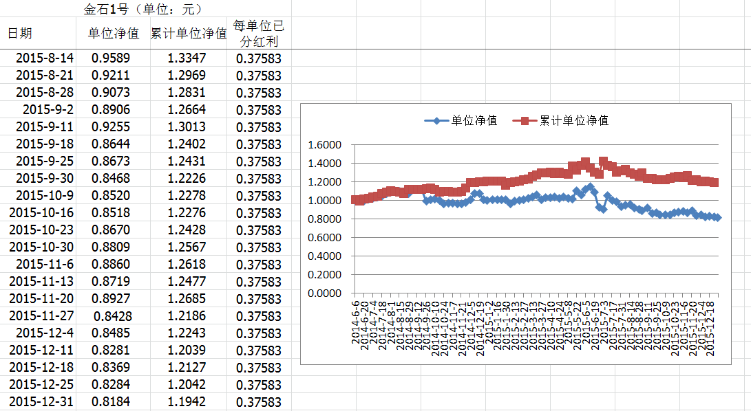 金石1号证券投资集合资金信托计划净值披露(2015年12月31日)