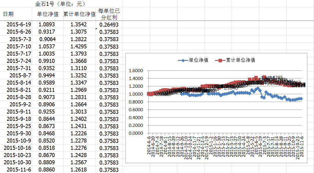 湖南信托•金石1号证券投资集合资金信托计划净值披露(2015年11月06日)