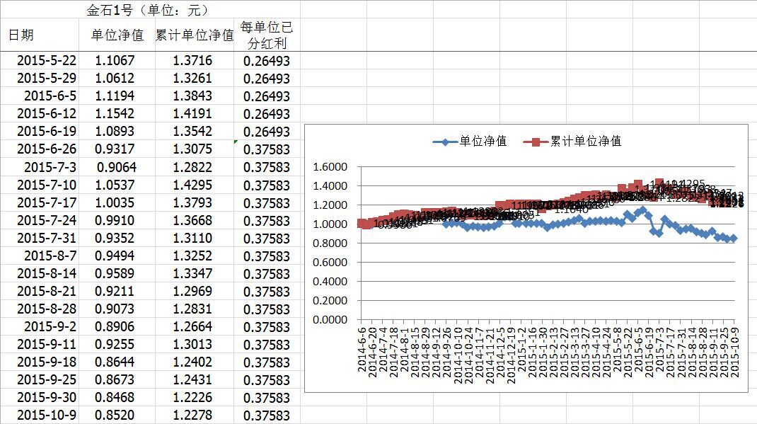 日期 金石1号单位净值 累计单位净值