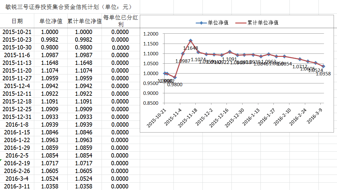 敏锐三号证券投资集合资金信托计划净值披露(2016年03月11日)