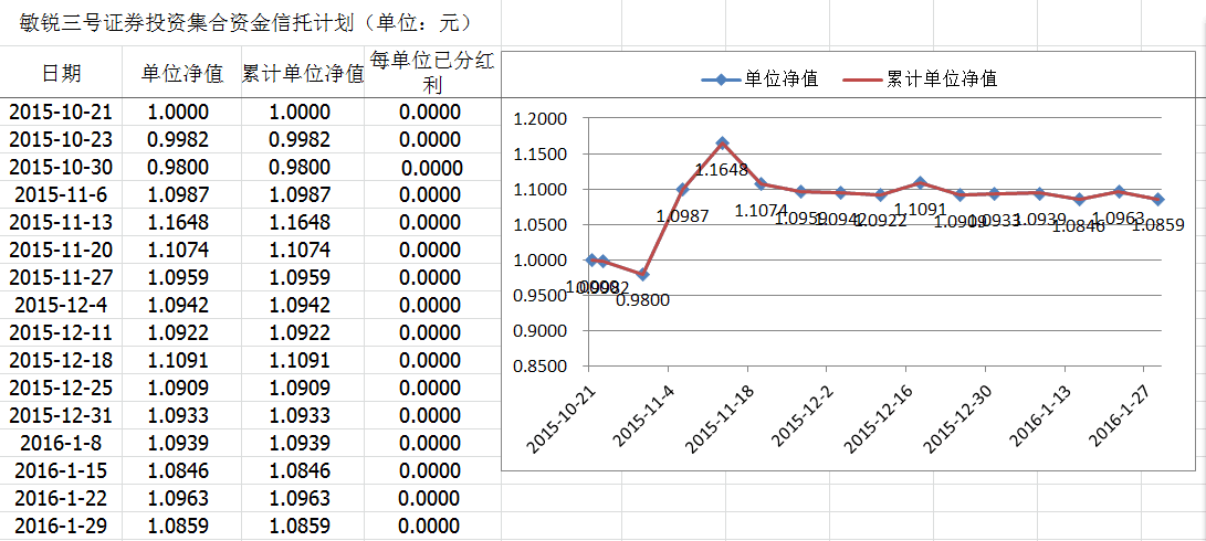 敏锐三号证券投资集合资金信托计划净值披露(2016年01月29日)