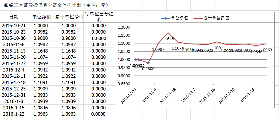 敏锐三号证券投资集合资金信托计划净值披露(2016年01月22日)