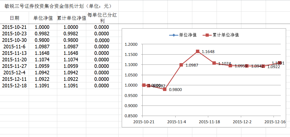 敏锐三号证券投资集合资金信托计划净值披露(2015年12月18日)
