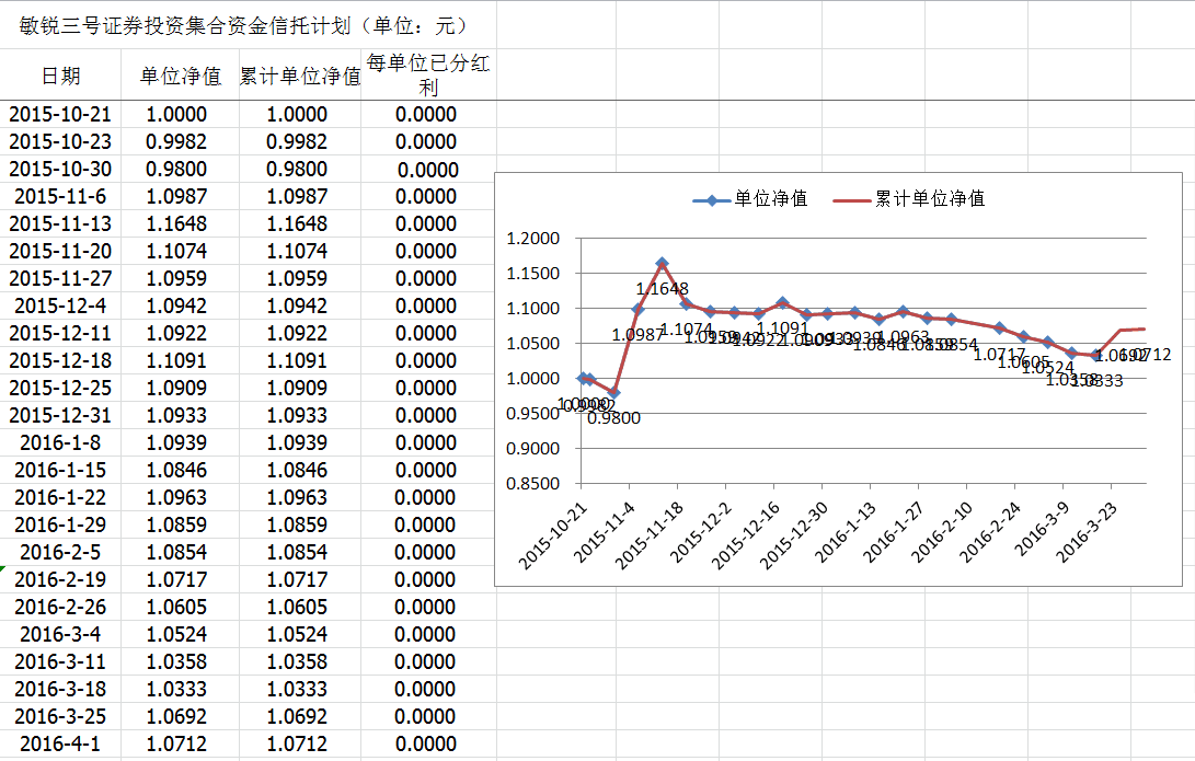 敏锐三号证券投资集合资金信托计划净值披露(2016年4月1日)