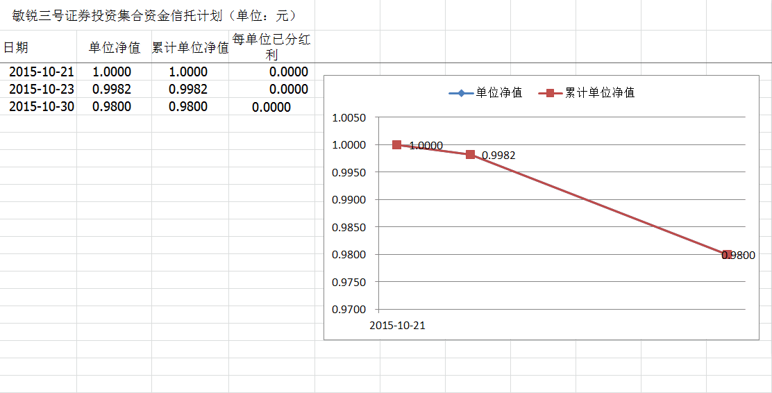 敏锐三号证券投资集合资金信托计划净值披露(2015年10月30日)
