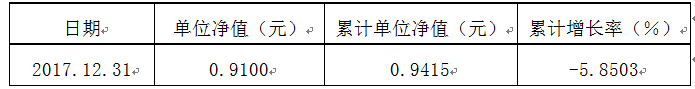 截止2017年12月31日,实现信托财产净值增长为:-5.8503%。