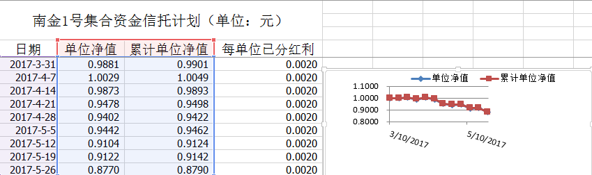 湖南信托-南金1号集合资金信托计划净值披露(2017年5月26日)