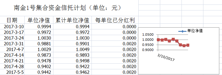 湖南信托-南金1号集合资金信托计划净值披露(2017年5月5日)