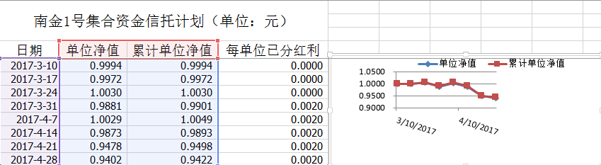 湖南信托-南金1号集合资金信托计划净值披露(2017年4月28日)