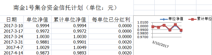湖南信托-南金1号集合资金信托计划净值披露(2017年4月14日)