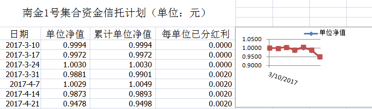 湖南信托-南金1号集合资金信托计划净值披露(2017年4月21日)