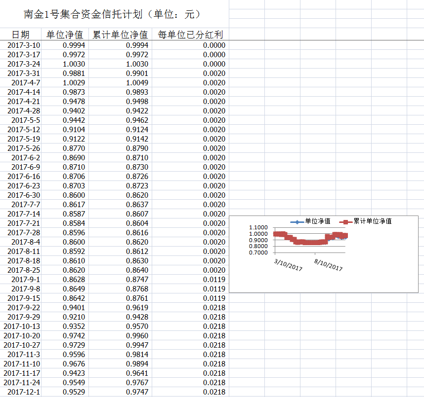 湖南信托-南金1号集合资金信托计划净值披露(2017年12月1日)