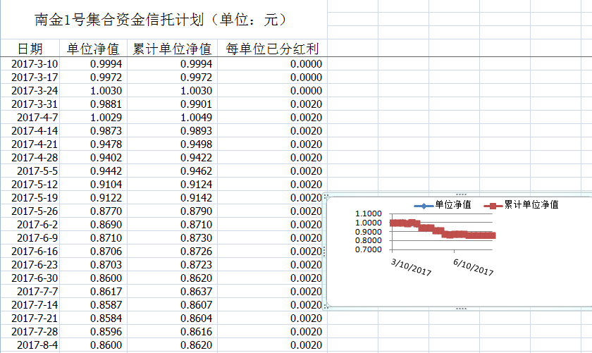 湖南信托-南金1号集合资金信托计划净值披露(2017年8月4日)