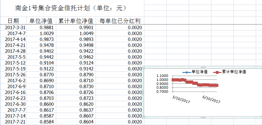 湖南信托-南金1号集合资金信托计划净值披露(2017年7月21日)